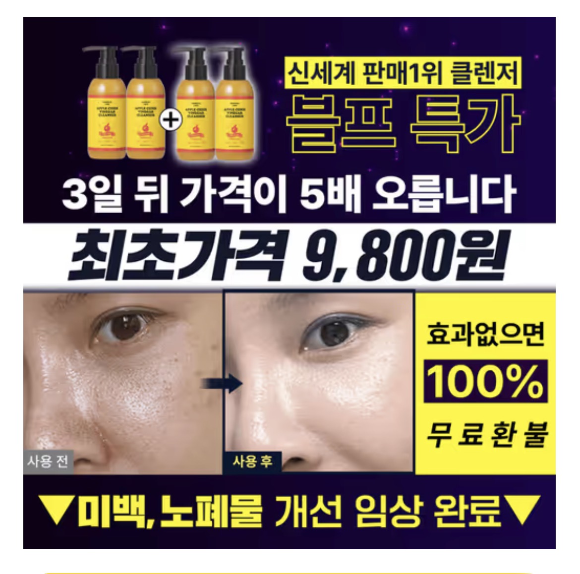 🎁 역대최초! 신세계 1위 미백 팩클렌저 9,800원 홈쇼핑 완판 [애사비 팩클렌저]는 누런끼 122% 개선 임상으로 화제가 된 버블팩클렌저입니다. 애사비 팩클렌저에는 모공 속 노폐물을 배출하고, 피부 톤을 밝혀주는 사과수 성분이 무려 ㅇㅇㅇㅇㅇppm으로 국내 최대 함량 들어있는데요! 애사비 팩클렌저에 들어있는 사과수는 몇 ppm일까요?
