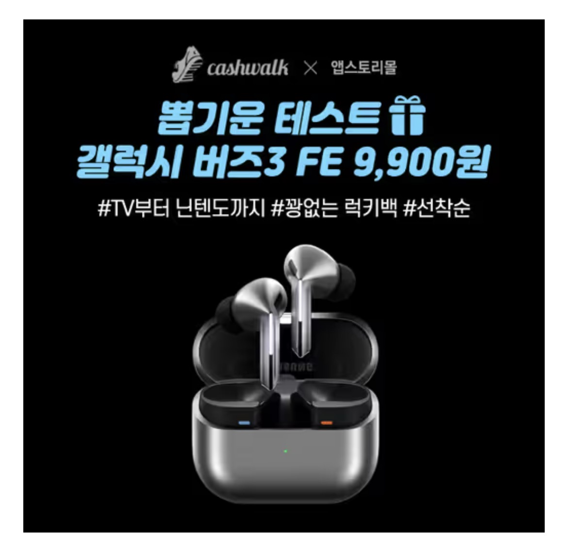 🎁9,900원 앱스토리몰 럭키백으로 당첨될 수 있는 약 16만원 상당의 갤럭시 버즈3 FE 블루투스 이어폰은 강력한 ㅇㅇㅇ 노이즈 캔슬링 기능을 제공합니다. 귀에 쏙 감기는 인체공학적 설계는 물론 갤럭시 기기 간 자동 스위칭 기능으로 편리함까지 더했습니다. 빈칸에 들어갈 단어는 무엇일까요? (초성힌트:ㅇㅌㅂ)
